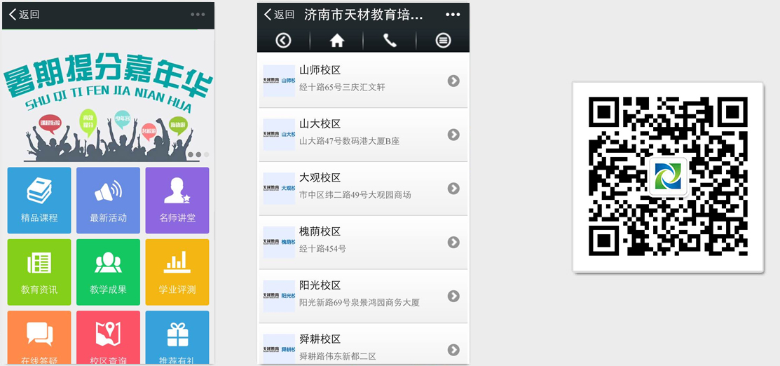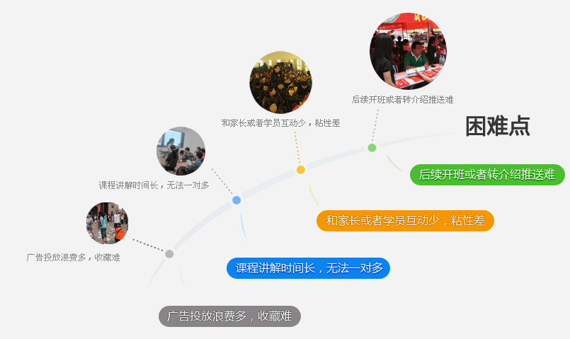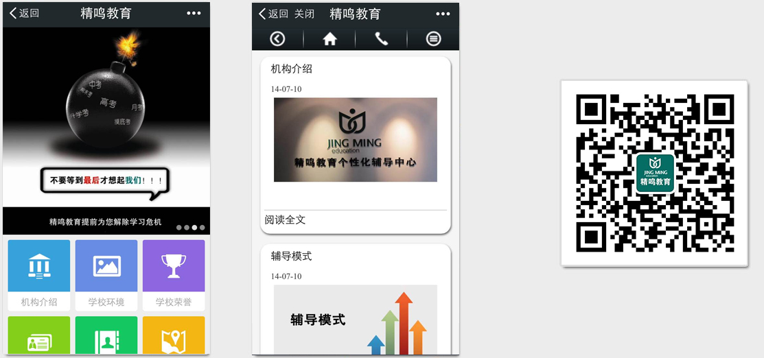 教育培训服务只有用户获取到相当多的信息的时候,才会产生报名冲动。传统的宣传手段,潜在用户即便拿到了传单、看到了广告,其保留广告的比例也不高。且这些广告因为版面受限,所展示的内容也有限。而微站则不同,只要是潜在学员拿到广告后,扫描二维码成为微信关注者,即可以展示教育机构的全部课程、名师、地图、优惠等等活动内容,从而在第一时间引导用户选课并咨询。